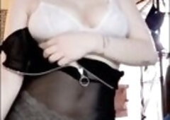 Busty redheaded goth BBW ties up her massive natural boobs and trains her mouth
