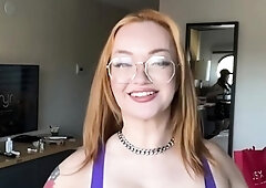 Red XXX masturbates in a latex dress while teasing with her huge natural tits