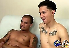 Latino horny studs Rafael and Alex helped each other to launch a big spurt into thin air
