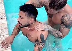 Passionate kissing leads to bareback action between bronzed Brazilian hunks