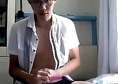 Hot Colombian twink Santiago Cardenas jerking off in his room for a money shot