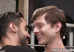 Men in suits Joe Gillis and Leo Grin having sex full of cocksucking and barebacking