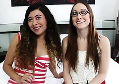 Two horny girls on the hunt for a big salami to suck and get their wet pussies filled