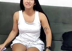 Hot Latina Agatadelphine shows off as she drains in front of the camera