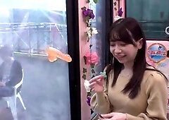 The gal spreads her legs and straddles the man, moving her hips up and down.