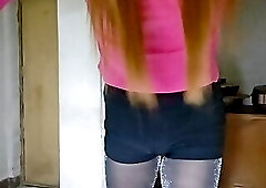 Perfect sissy crossdresser in red lingerie teaches 18yo sissy wannabe how to dance and tease