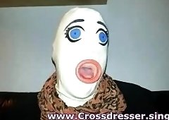 Man in the mask gets his butthole penetrated by the T-cock of the hot shemale babe