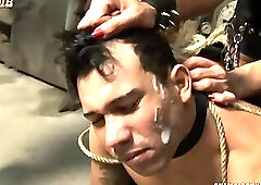 Rough gangbang with group of big cock shemales and he got fucked so hard after shemales sucked his cock Horny big ass shemales knelt and sucked hard d