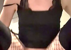 excited tgirl with large wang and ebony stockings massive sex-toy ride precum intensive ejaculation