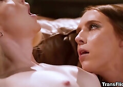 Busty blonde cis girl has her first crazy threesome with a trans princess