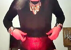 Amateur Crossdresser kellycd2022 showing off my red lace costume outdoors and doing a Saturday morning web camera show