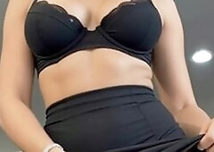skinny latina transgirl with big ass and small boobs strokes her girly cock