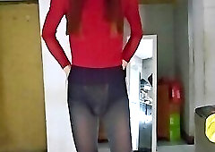 Vintage black trans beauty shows off her small tits and big cock while getting off in heels