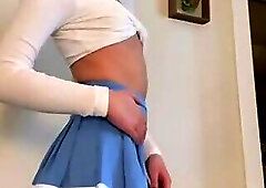 Cute femboy sissy, this babe puts on a sheer mesh bodysuit revealing her stripped, effeminate, and shaved body below. This babe walks around her abode